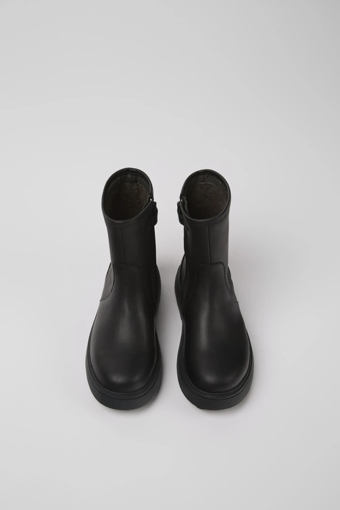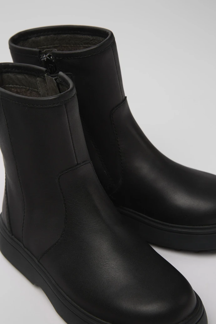 Black leather boots for kids with OrthoLite® insoles and 100% rubber outsoles.