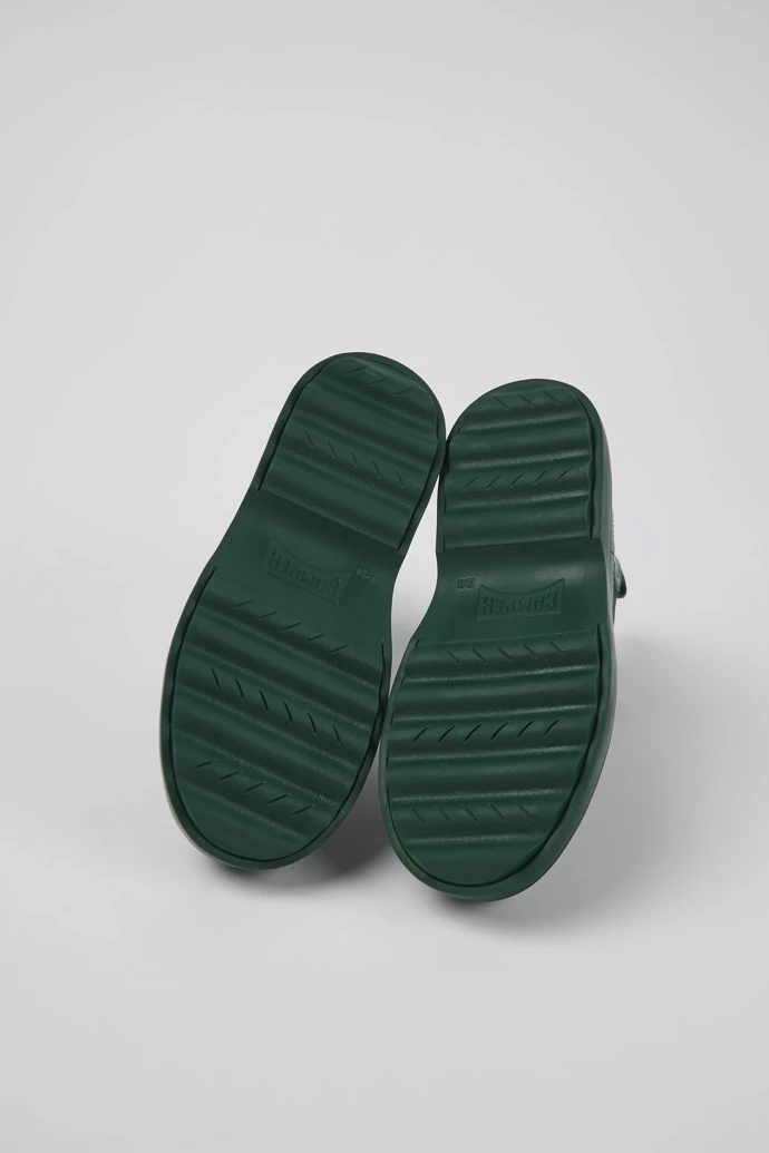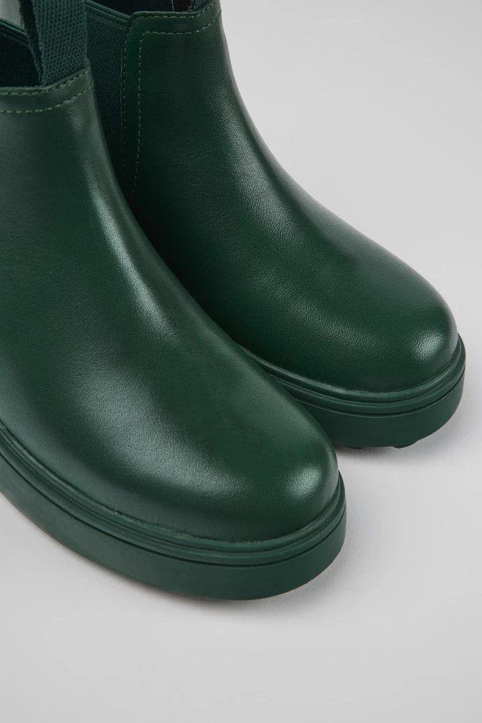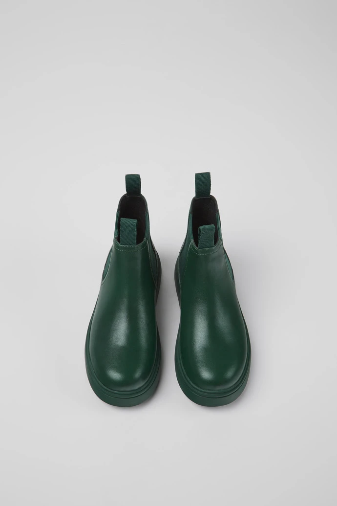 Green leather kids’ Chelsea boots with rubber outsoles.