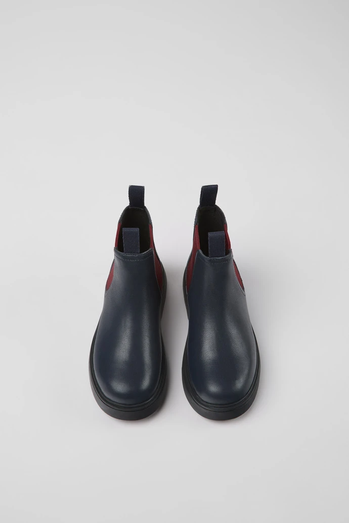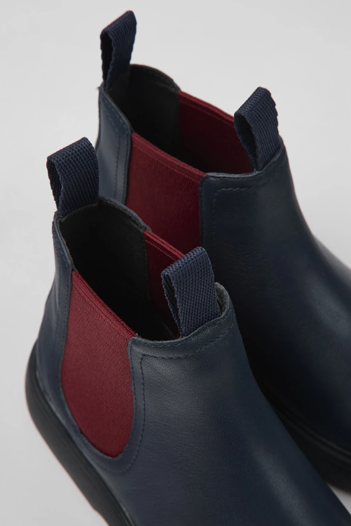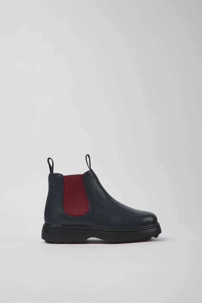 Navy blue leather kids’ Chelsea boots with rubber outsoles.
