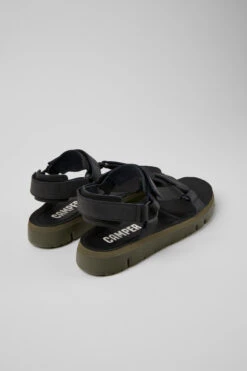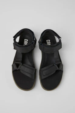 Black leather men’s sandals with XL EXTRALIGHT® Organix™ 3.0 outsoles (30% bio-circular compounds).