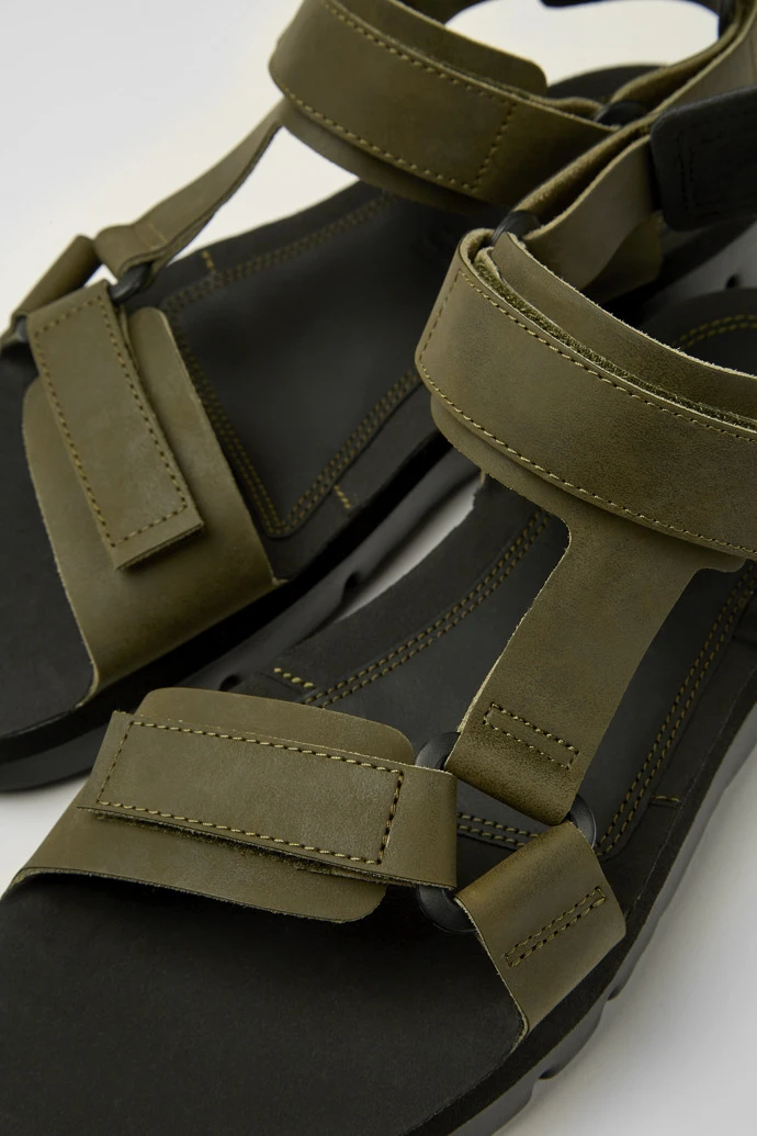 Green leather men’s sandals with XL EXTRALIGHT® Organixâ„¢ outsoles (30% bio-based sugarcane) and a hook-and-loop closing system.