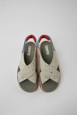 Multicolored paint splatter effect leather and recycled PET webbing women’s sandals with XL EXTRALIGHT® Organix™ outsoles (30% bio-based sugarcane).