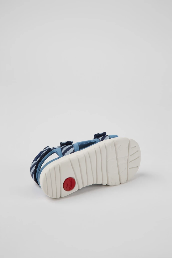 Multicolored textile kids’ sandals with a hook-and-loop closing system and EVA outsoles.