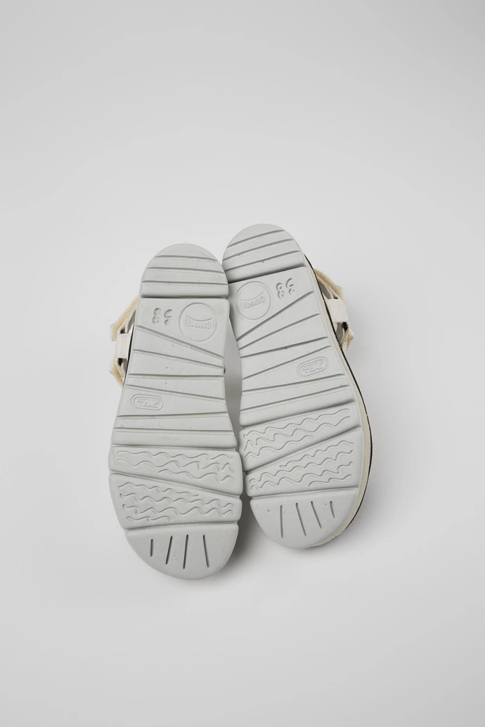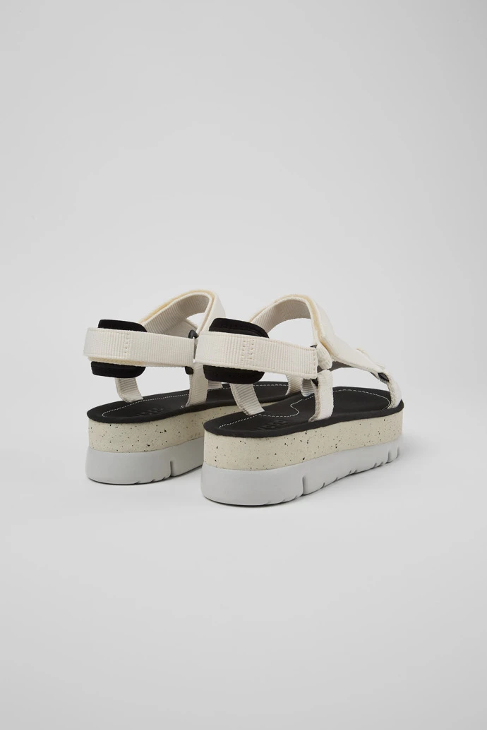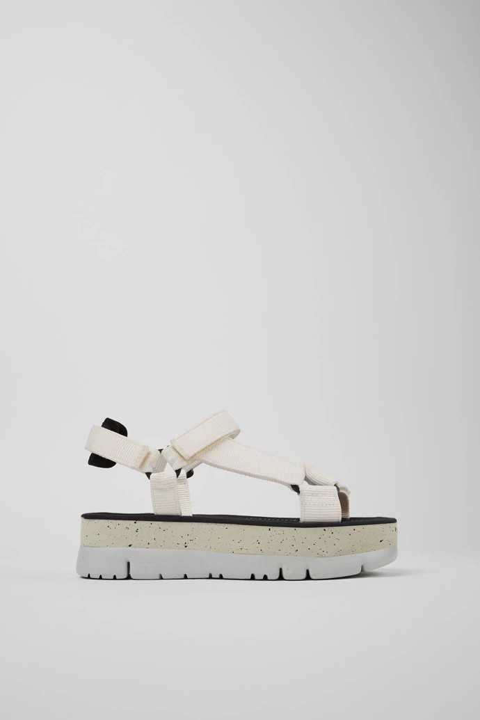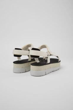 White sandal for women. 100% recycled PET fabric straps with velcro closure. 100% white platform EVA outsole.
