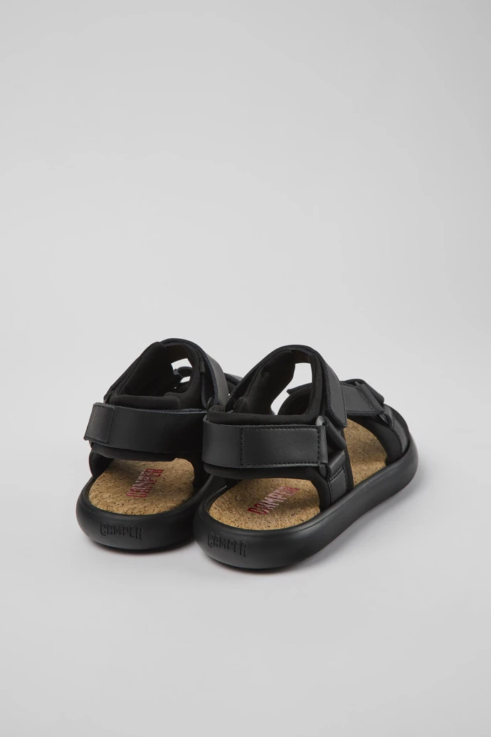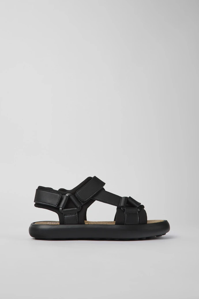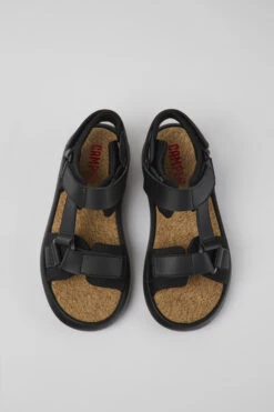 Black leather and textile women’s sandals with anatomic non-removable EVA footbeds and XL EXTRALIGHT® Organix™ 3.0 outsoles.