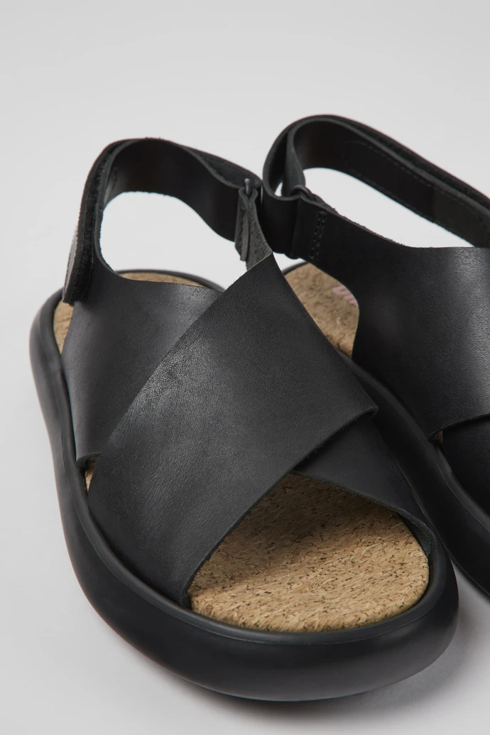 Black leather women’s sandals with anatomic non-removable EVA footbeds and XL EXTRALIGHT® Organix™ 3.0 outsoles (30% bio-circular compounds).