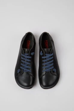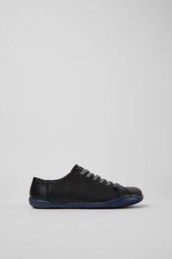 Black casual shoe for men. Full grain, chrome free leather and elastic shoe laces.