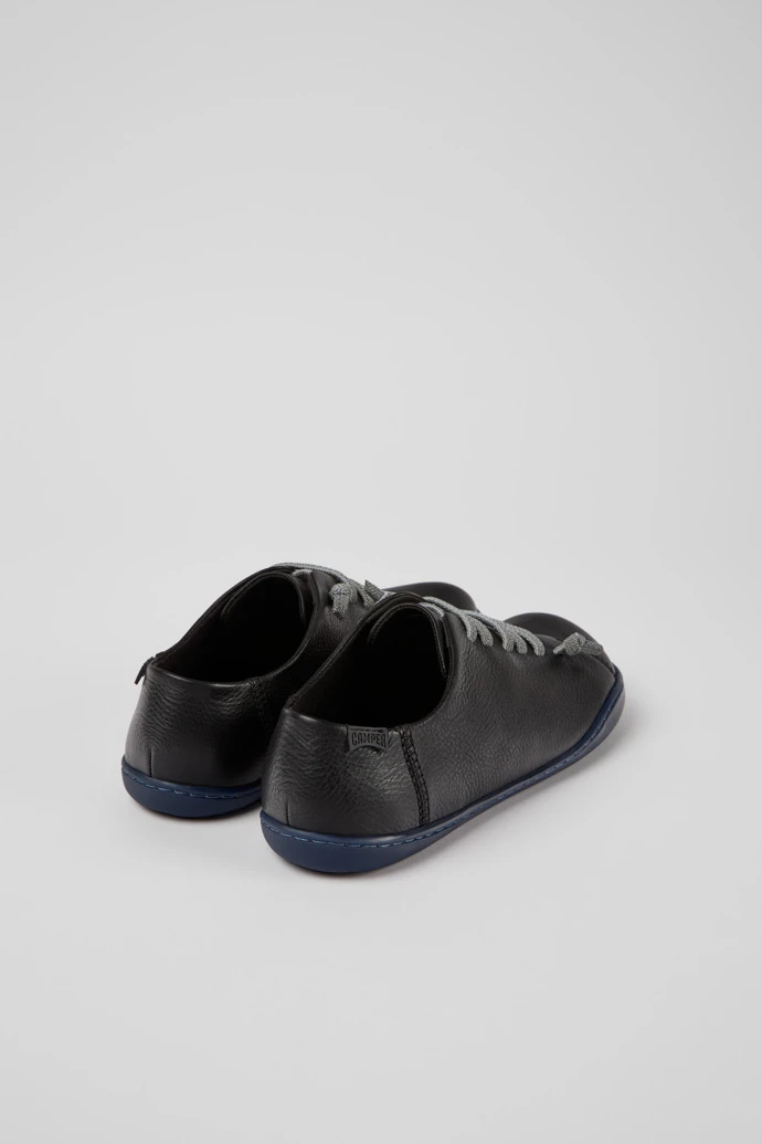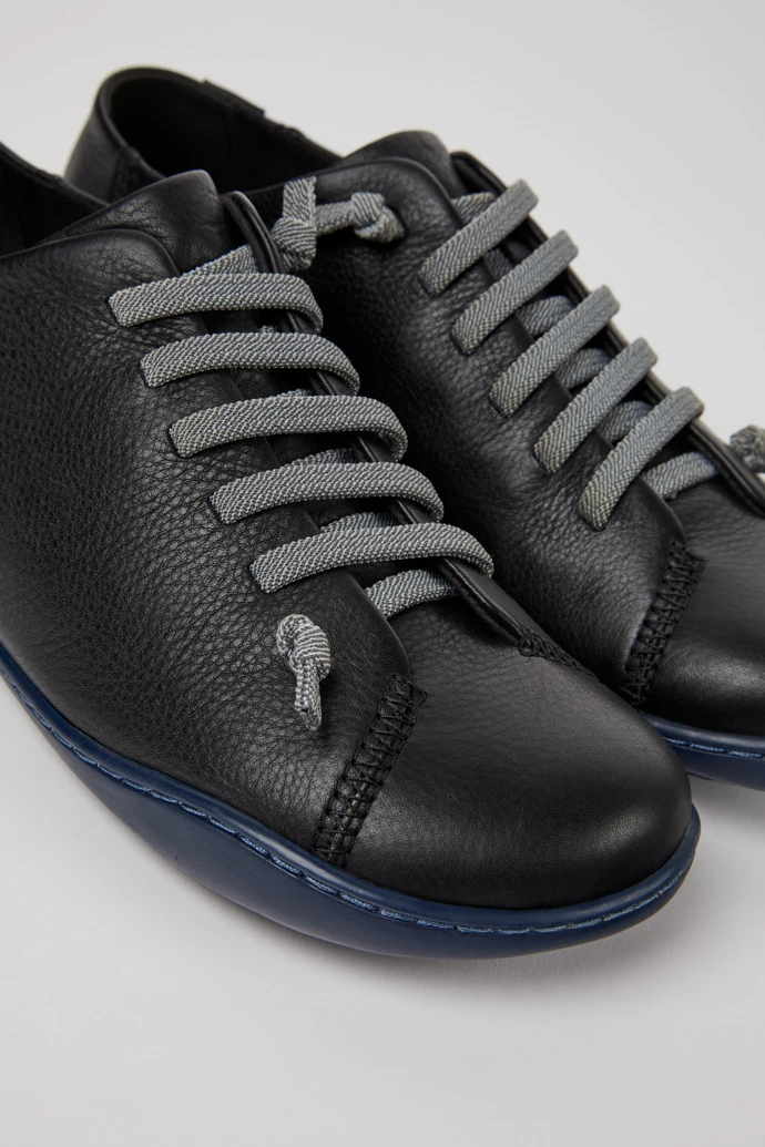 Black shoe for women. Full grain upper with elastic laces and TPU outsole.