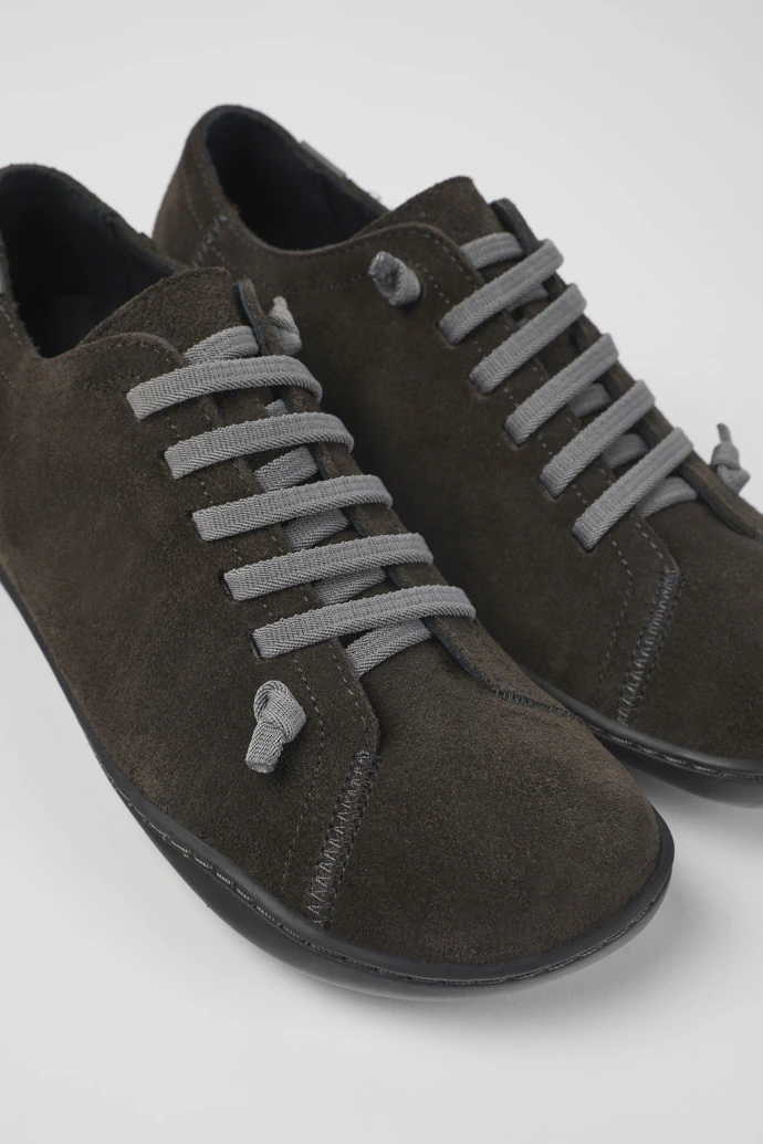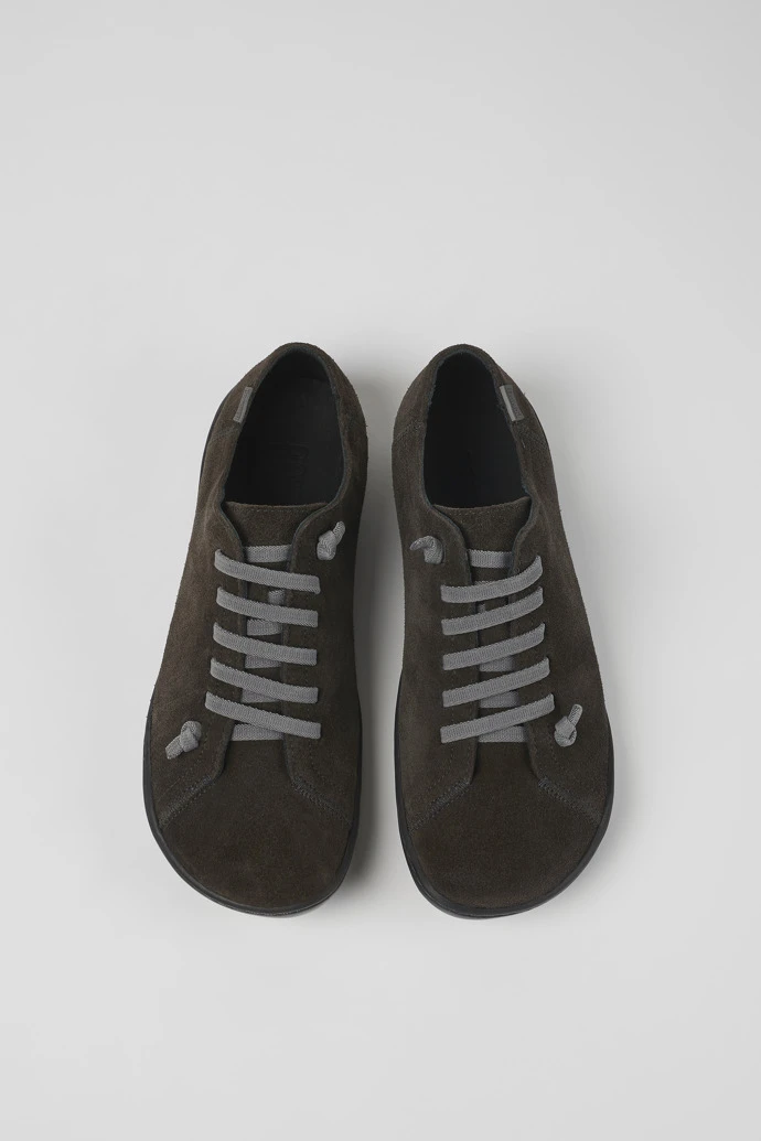 Gray nubuck women’s shoes with removable PU footbeds and TPU outsoles (20% recycled).