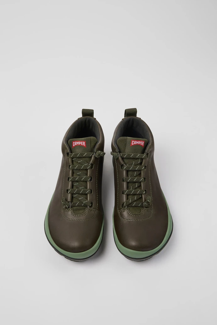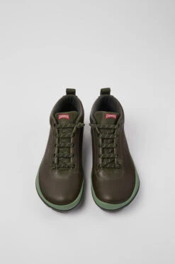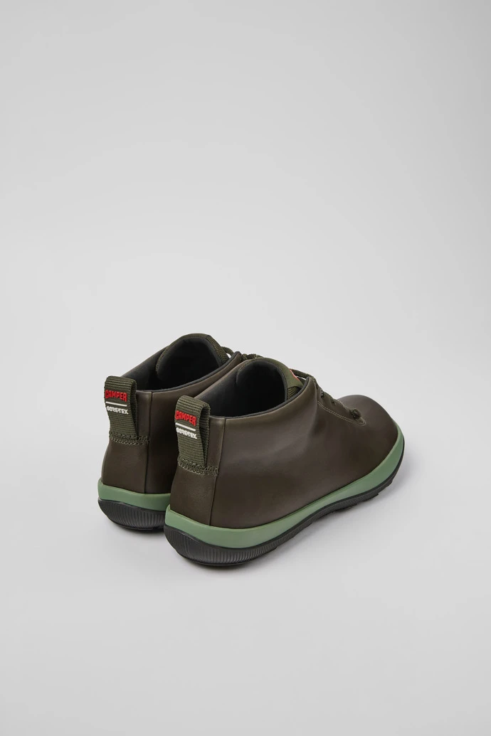 Green leather and recycled PET women’s sneakers with GORE-TEX technology, OrthoLite® Recycled™ footbeds, EVA midsoles, and Michelin rubber outsoles (27% natural).