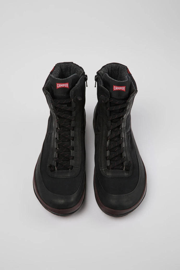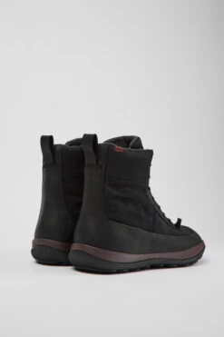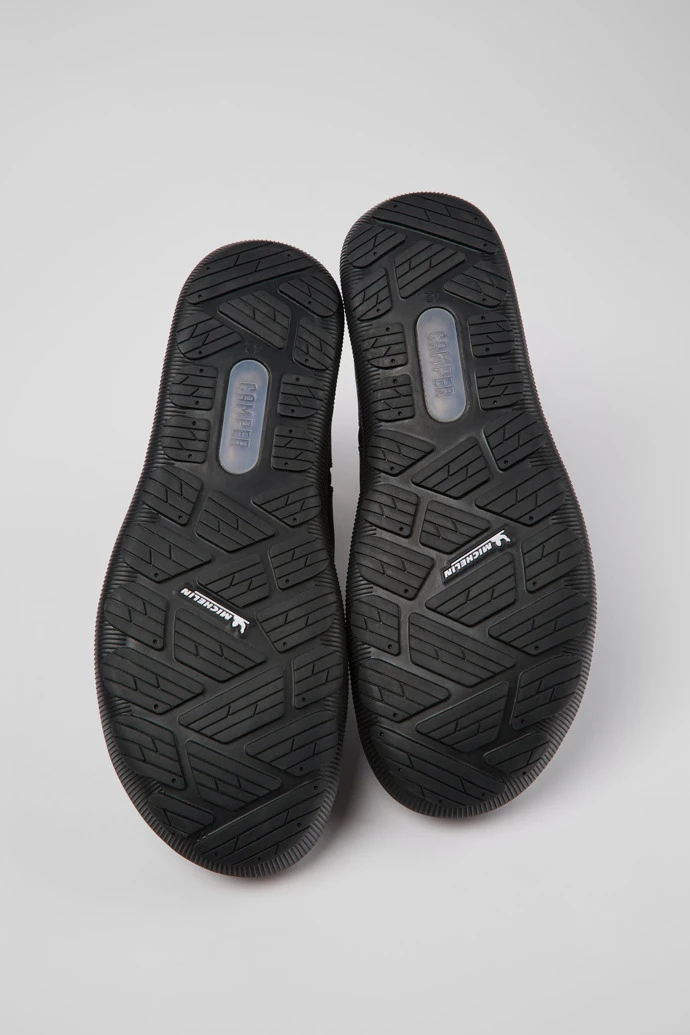 Black recycled nylon and leather, with water repellant treatment, men’s boots, PrimaLoft® technology and 27% natural rubber Michelin outsoles.
