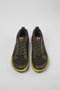 Green recycled nylon and leather men’s ankle boots with a water repellent treatment, PrimaLoft® technology, and 27% natural rubber Michelin outsoles.