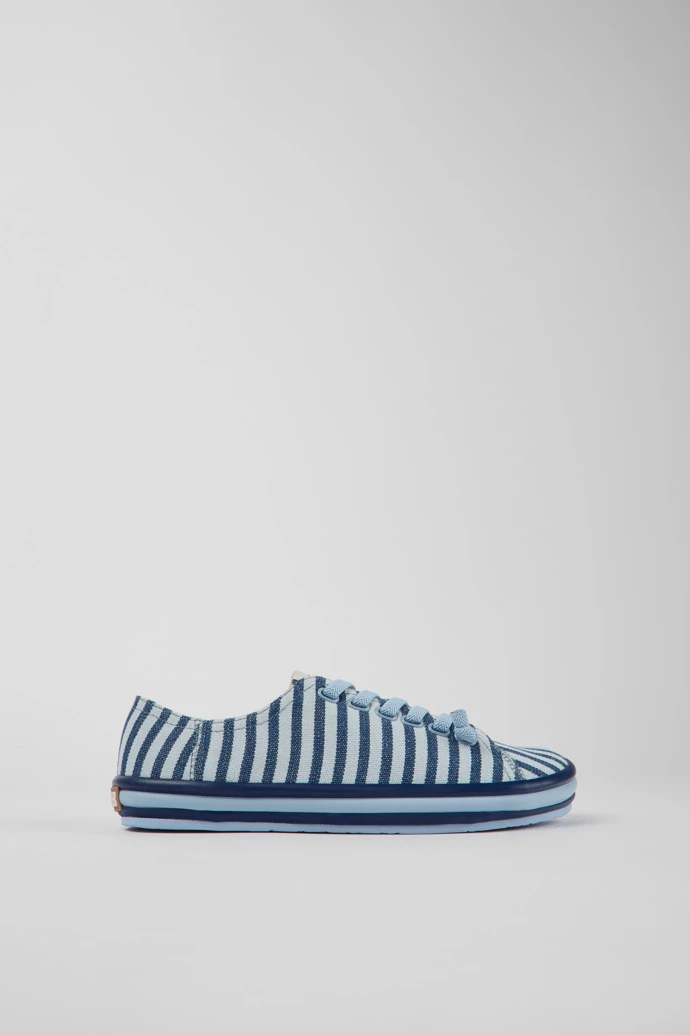 Blue and white striped textile women’s sneakers with OrthoLite® Recycled™ removable footbeds and rubber outsoles.