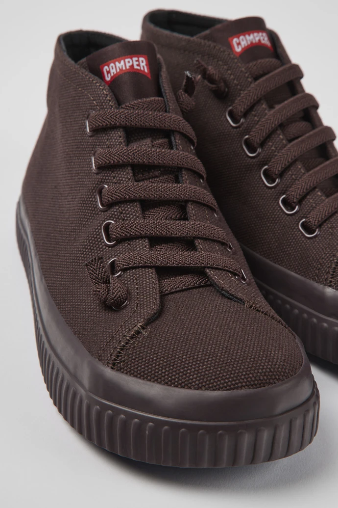 Burgundy recycled cotton women’s sneakers with OrthoLite® Recycled™ footbeds and rubber outsoles.