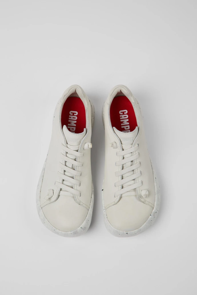 White leather men’s sneakers with recycled elastic laces and XL EXTRALIGHT® Sustainable+ outsoles (51% recycled).