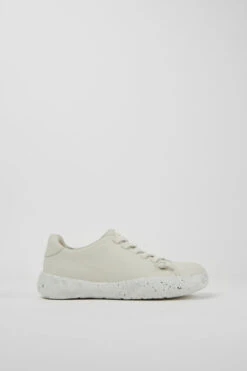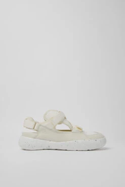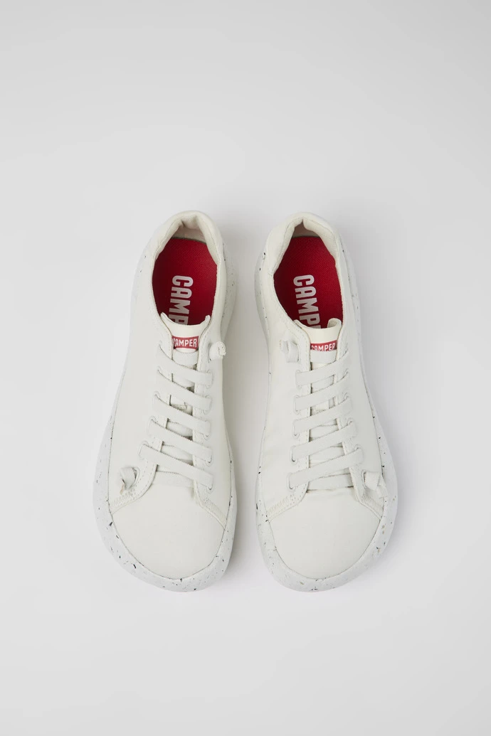 White textile men’s sneakers with OrthoLite® Recycled™ removable footbeds and XL EXTRALIGHT® Sustainable + outsoles (51% recycled).