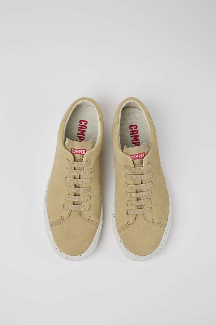 Beige nubuck women’s sneakers with 100% EVA outsoles (20% recycled).