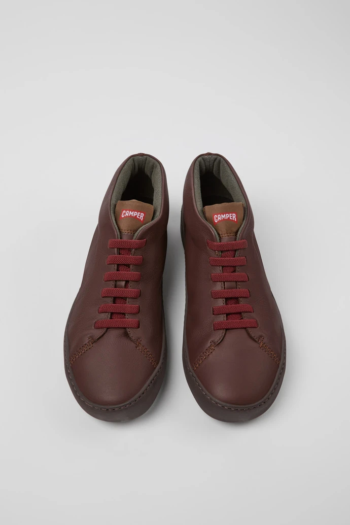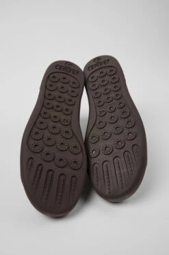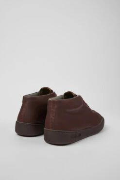 Brown leather men’s sneakers with OrthoLite® Recycled™ footbeds and EVA outsoles (20% recycled).
