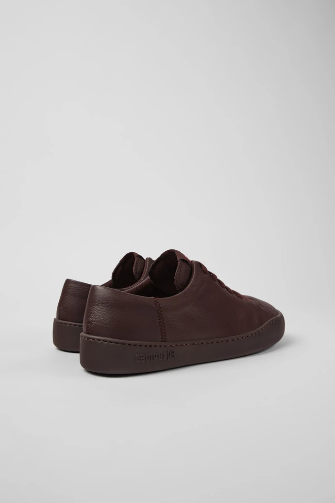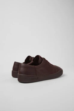 Burgundy leather men’s sneakers with OrthoLite® Recycled™ footbeds and EVA outsoles (20% recycled).