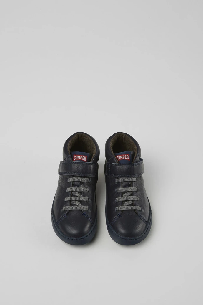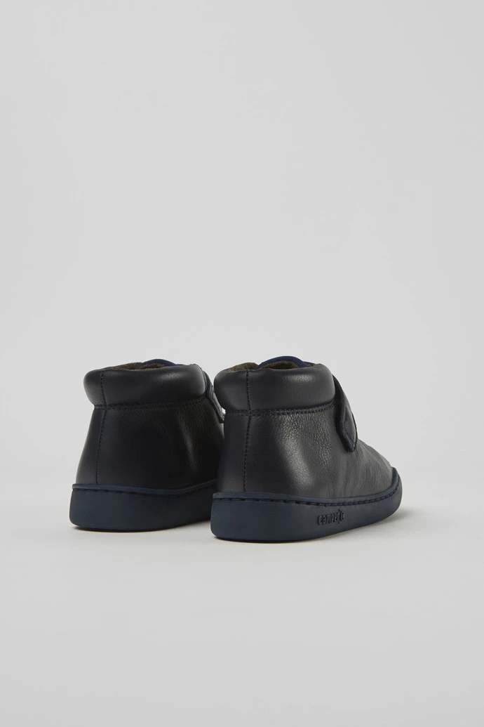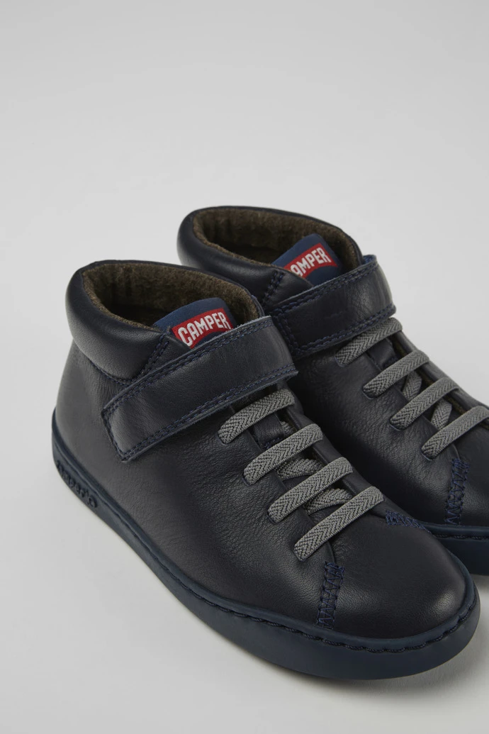 Dark blue leather boots for kids with Hook & Loop closing system, OrthoLite® removable footbed and 100% EVA outsoles (20% recycled)