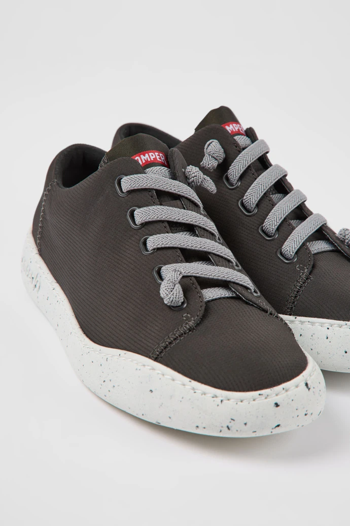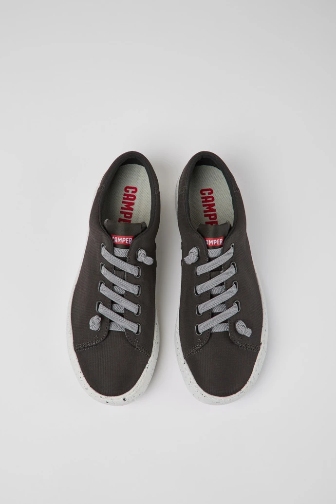 Gray textile women’s sneakers with OrthoLite® Recycled™ removable footbeds and EVA outsoles (20% recycled).