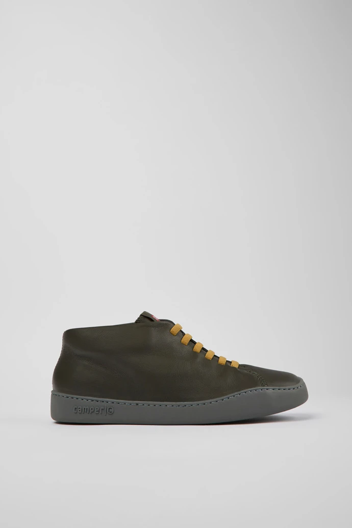 Green leather men’s sneakers with OrthoLite® Recycled™ footbeds and EVA outsoles (20% recycled).