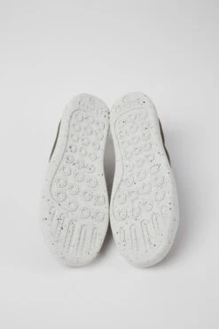 Green textile women’s sneakers with OrthoLite® Recycled™ removable footbeds and EVA outsoles (20% recycled).