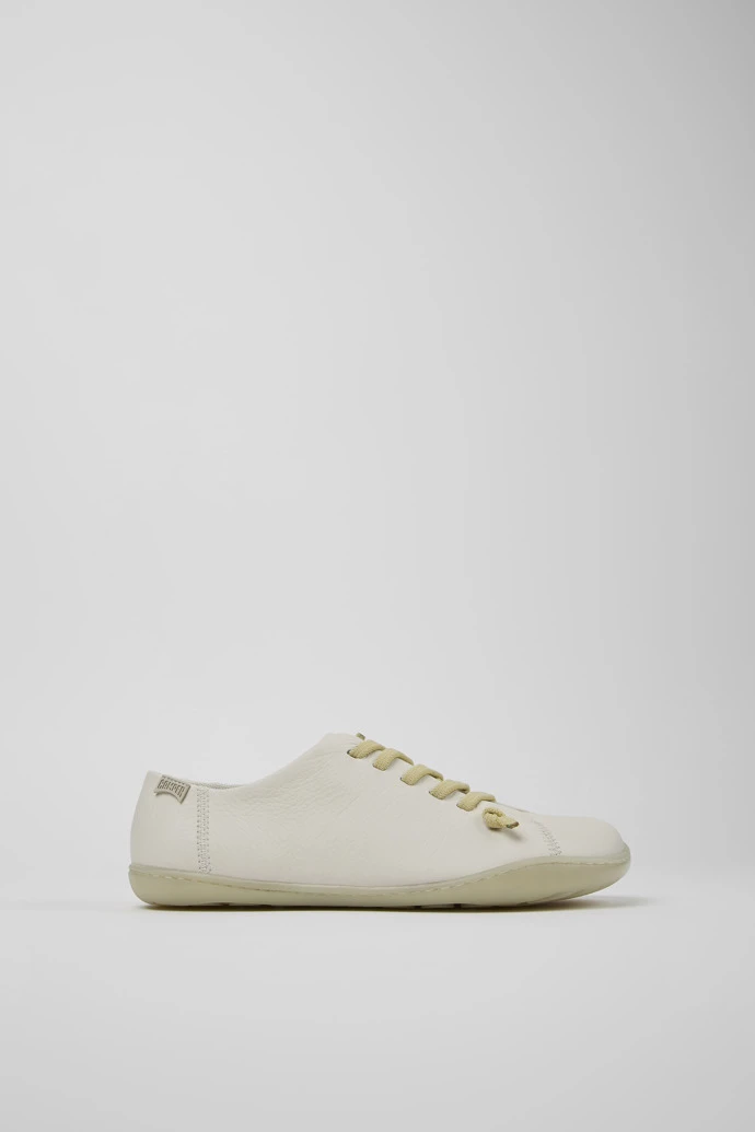 White leather women’s shoes with removable PU footbeds and TPU outsoles (20% recycled).
