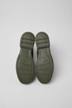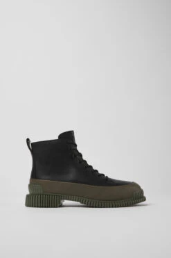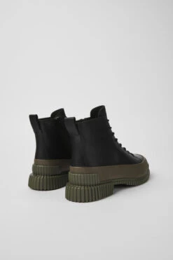 Black and green leather women’s ankle boots with OrthoLite® Recycled™ removable footbeds and EVA outsoles.