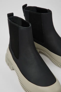 Black leather women’s Chelsea boots with OrthoLite® Recycled™ removable footbeds and EVA outsoles.