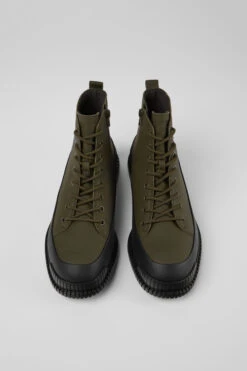 Smart khaki lace up boot for men. Full grain leather upper and EVA outsole with vertical cuts.