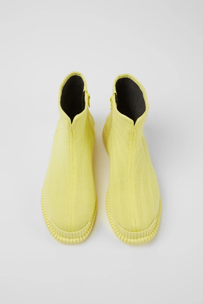 Yellow women’s ankle boots with TENCEL™ Lyocell uppers and EVA outsoles.