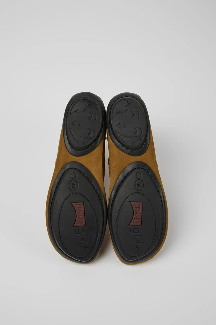 Brown nubuck women’s ankle boots with rubber outsoles (20% recycled).