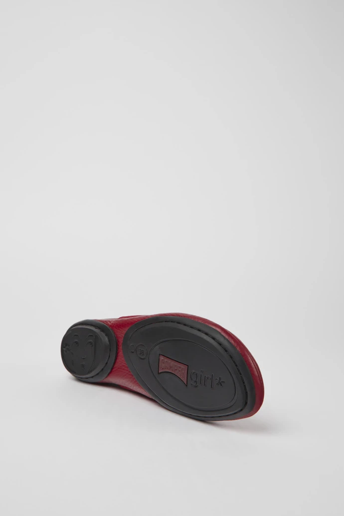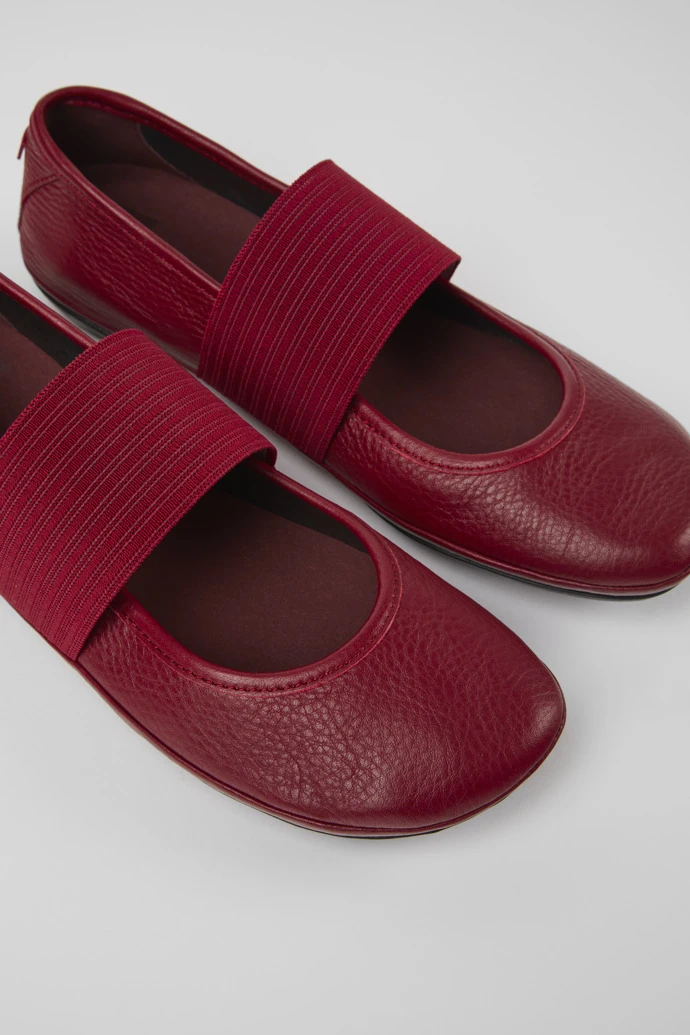 Deep red full grain leather ballerina shoe for women with removable EVA insole.
