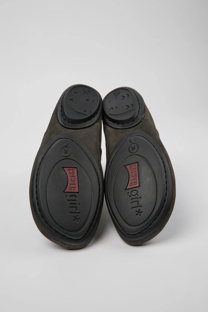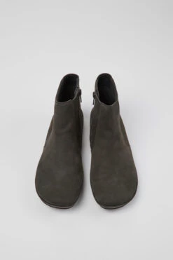 Gray nubuck women’s ankle boots with rubber outsoles (20% recycled).