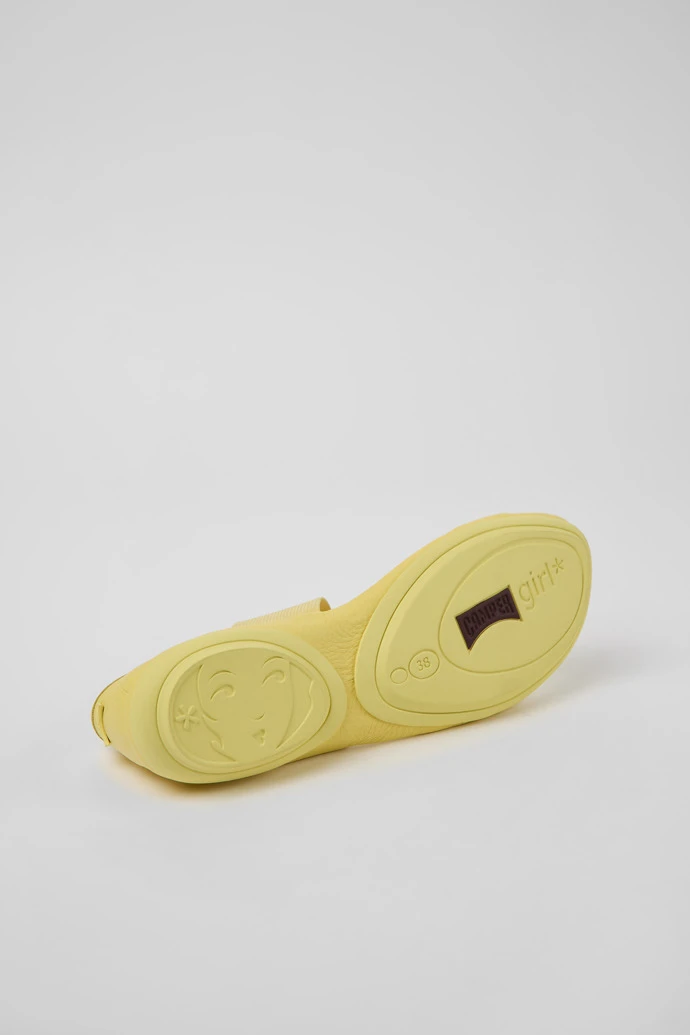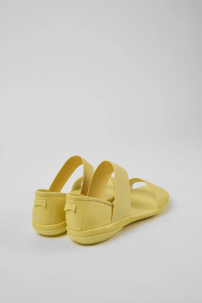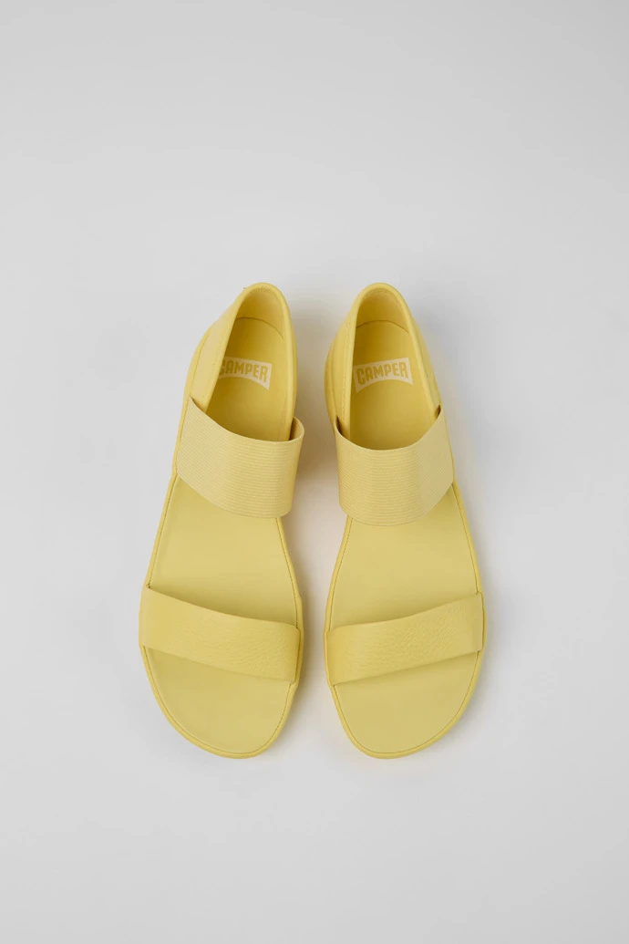 Yellow leather women’s sandals with non-removable PU footbeds and rubber outsoles (20% recycled).