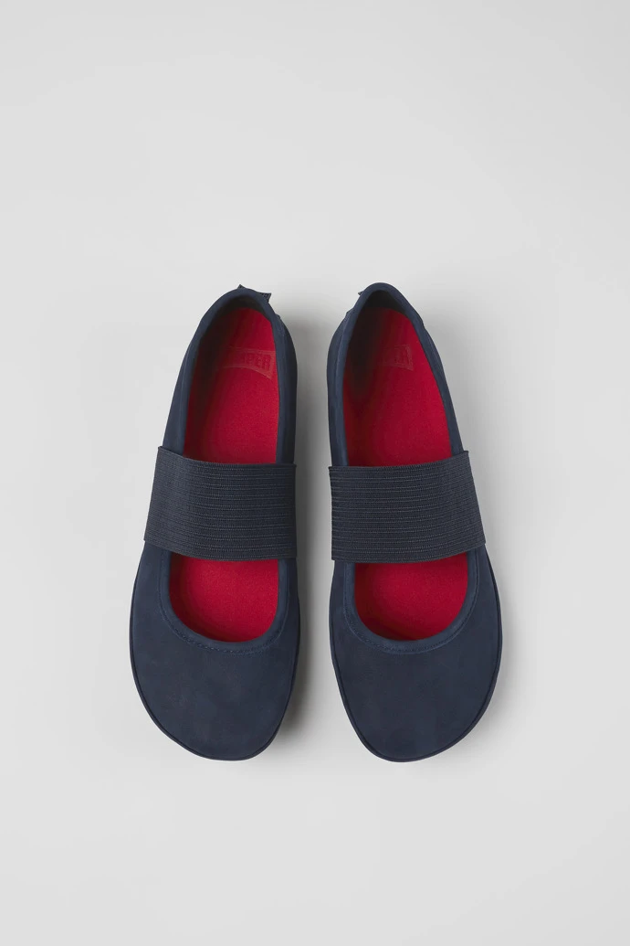 Navy nubuck leather moccasin for women with removable EVA insole.