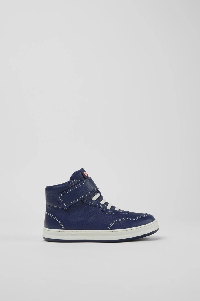 Blue leather sneakers for kids with Hook & Loop closing system, OrthoLite® removable footbed and 100% rubber outsole