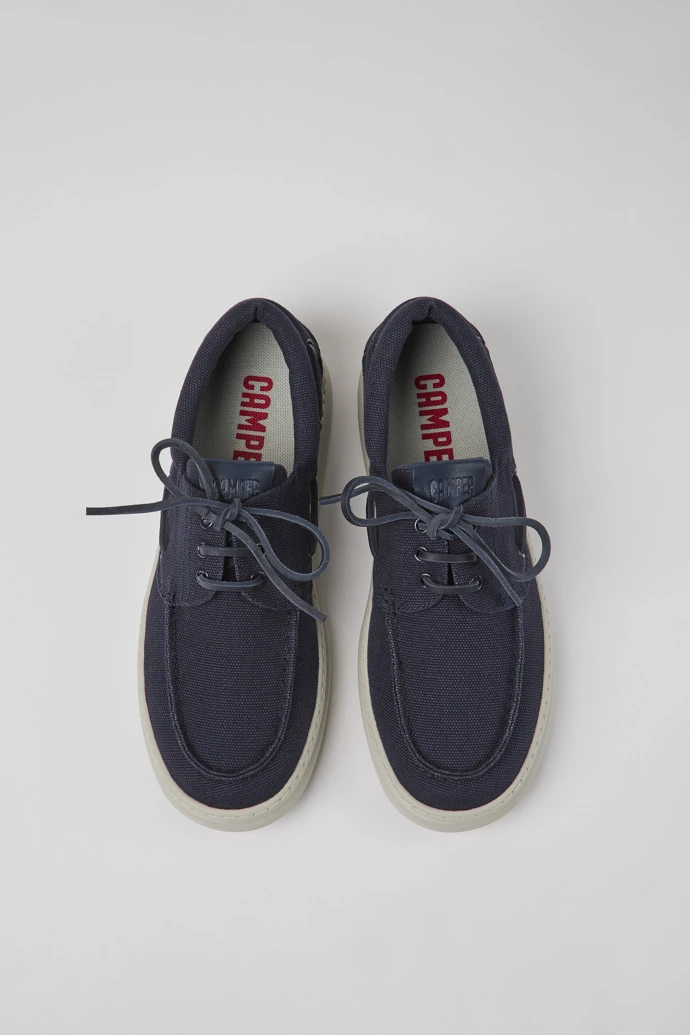 Blue textile men’s sneakers with OrthoLite® Recycled™ removable footbeds and XL EXTRALIGHT® outsoles.