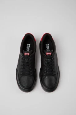 Black leather men’s sneakers with XL EXTRALIGHT® Organix™ outsoles (30% bio-based sugarcane).