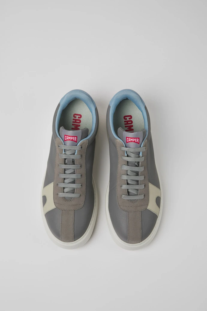 Gray leather and nubuck men’s sneakers with colorful details, OrthoLite® Recycled™ removable footbeds, and XL EXTRALIGHT® Organix™ 3.0 outsoles (30% bio-circular compounds).
