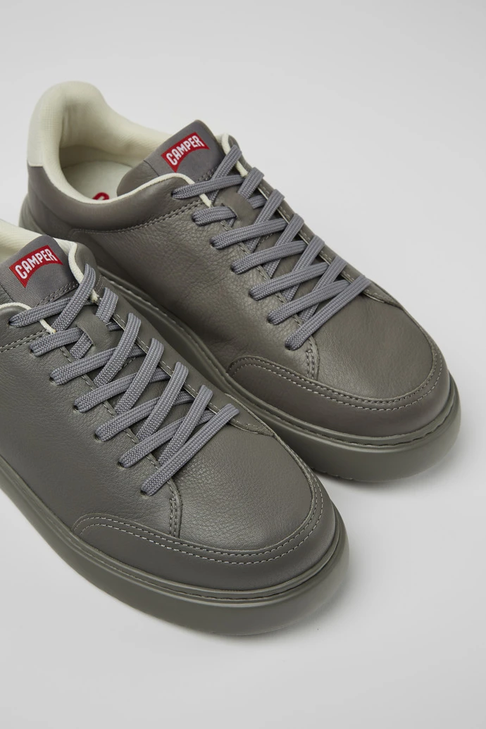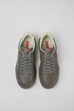 Gray leather men’s sneakers with XL EXTRALIGHT® Organix™ outsoles (30% bio-based sugarcane).