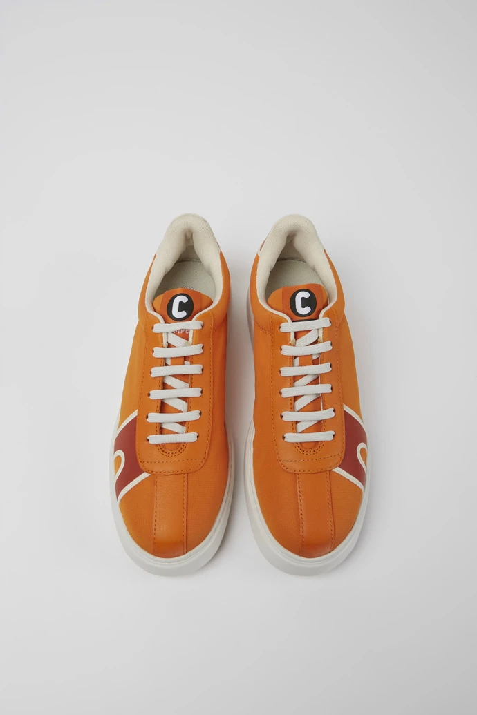 Orange and red recycled PET and leather women’s sneakers with XL EXTRALIGHT® Organix™ outsoles (30% bio-based sugarcane).