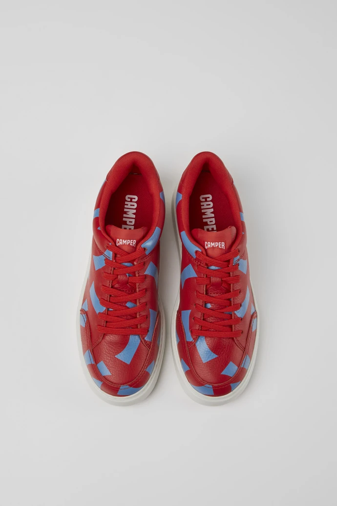 Red and blue printed leather women’s sneakers with OrthoLite® Recycled™ footbeds and XL EXTRALIGHT® Organix™ outsoles (30% bio-based sugarcane).