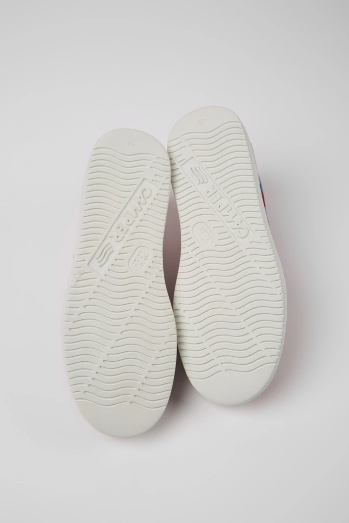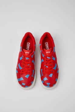 Red and blue printed leather men’s sneakers with XL EXTRALIGHT® Organixâ„¢ outsoles (30% bio-based sugarcane).