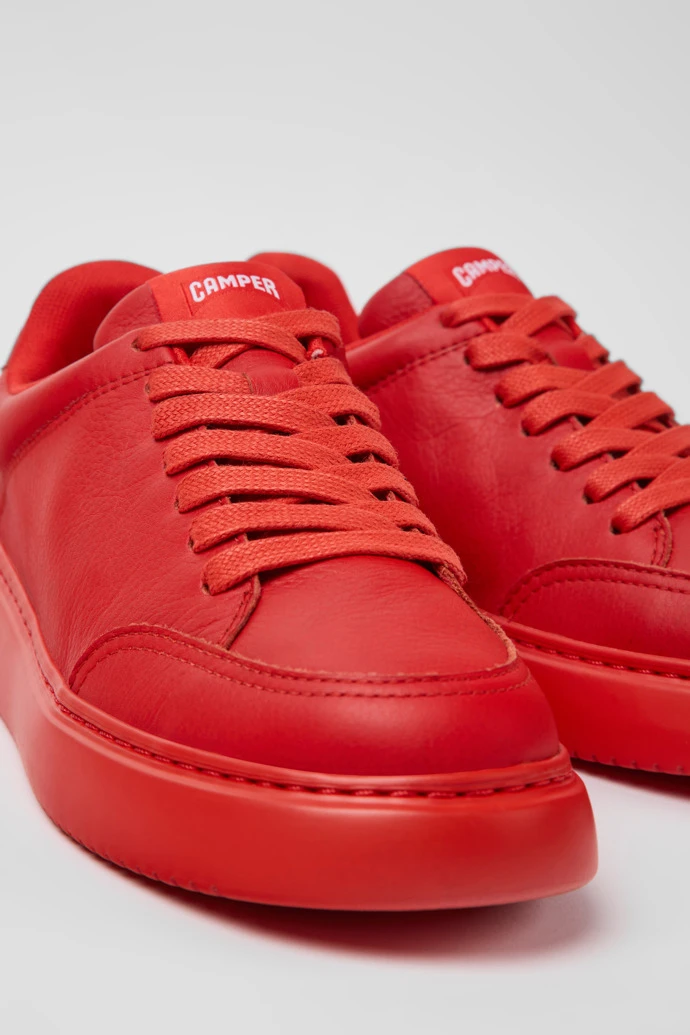 Red leather women’s sneakers with OrthoLite® Recycled™ removable footbeds and XL EXTRALIGHT® Organix™ 3.0 outsoles (30% bio-circular compounds).