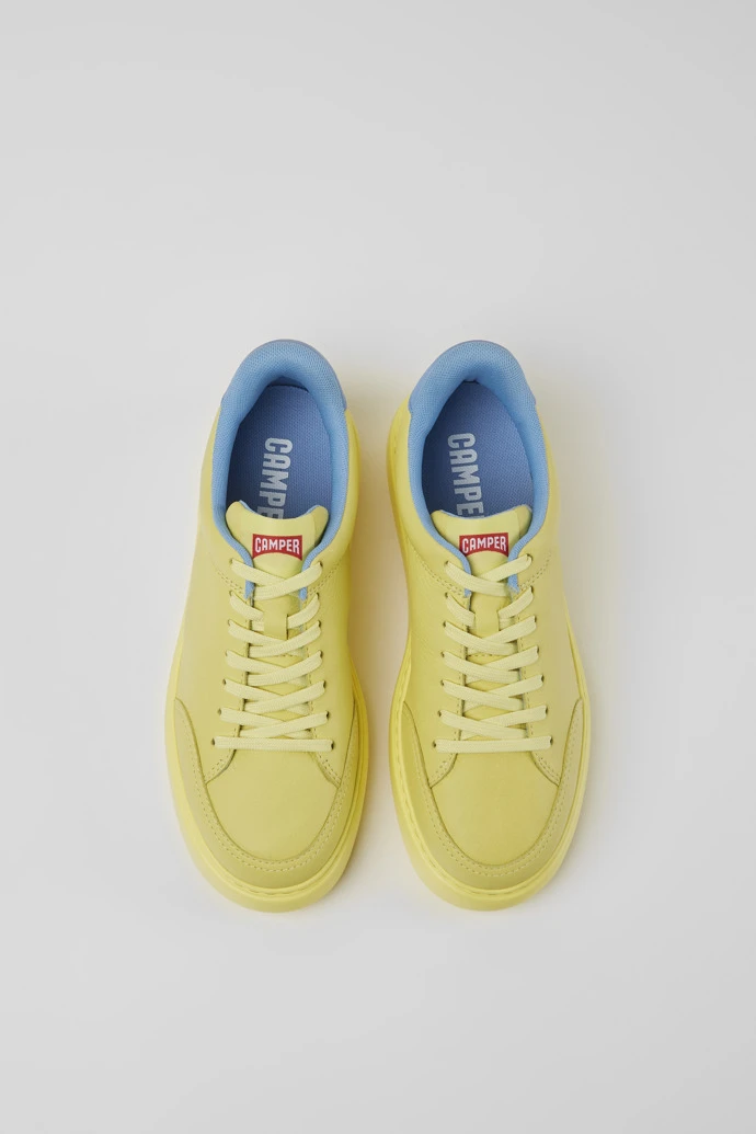 Yellow leather women’s sneakers with OrthoLite® Recycled™ footbeds and XL EXTRALIGHT® Organix™ outsoles (30% bio-based sugarcane).