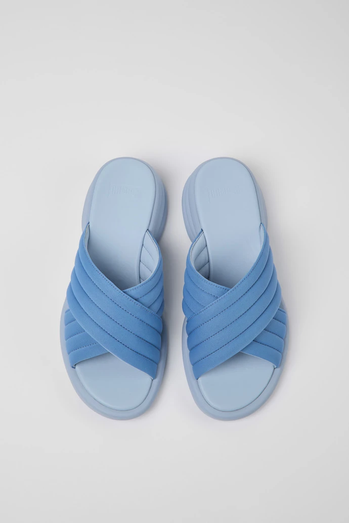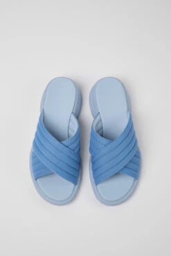 Blue textile women’s sandals with OrthoLite® Recycled™ non-removable footbeds and XL EXTRALIGHT® outsoles.