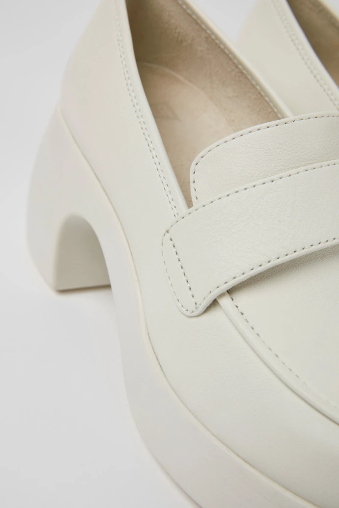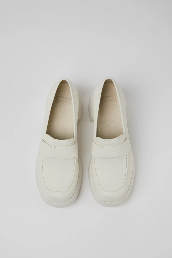 White leather women’s shoes with removable EVA footbeds and PU outsoles.