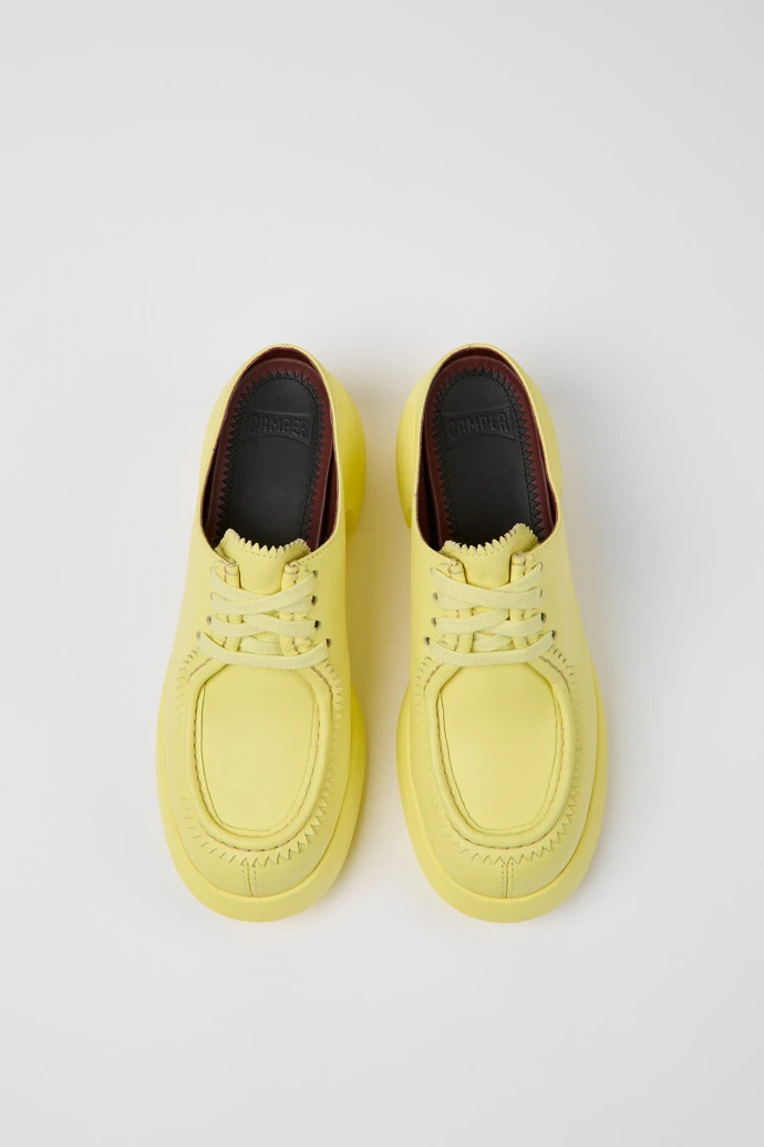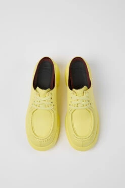 Yellow leather women’s mules with EVA footbeds and PU outsoles.